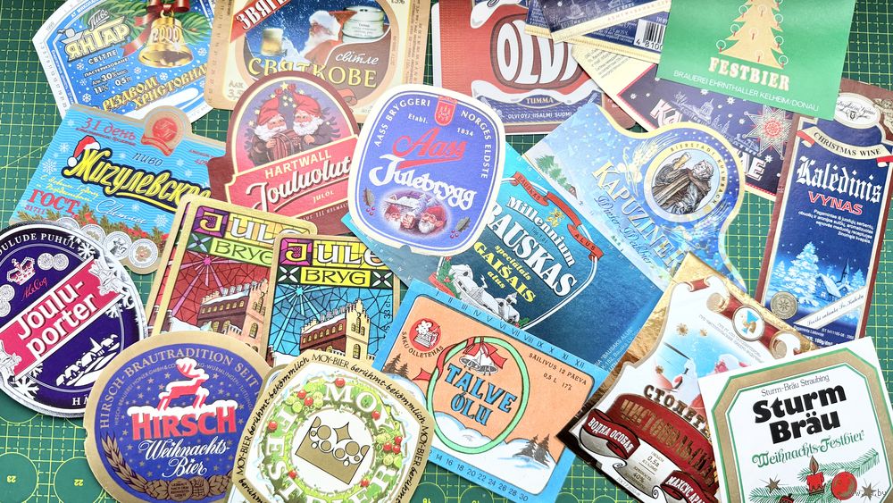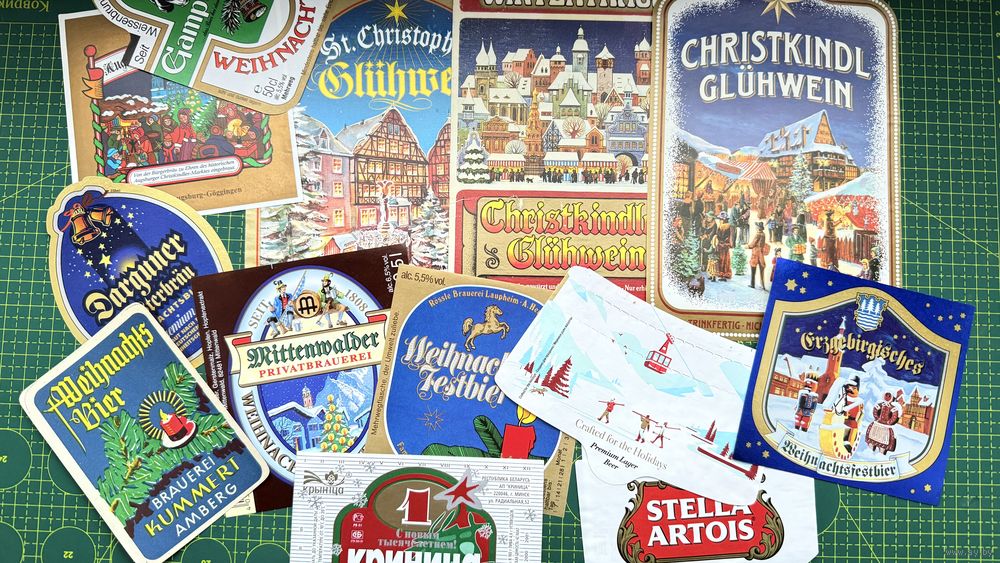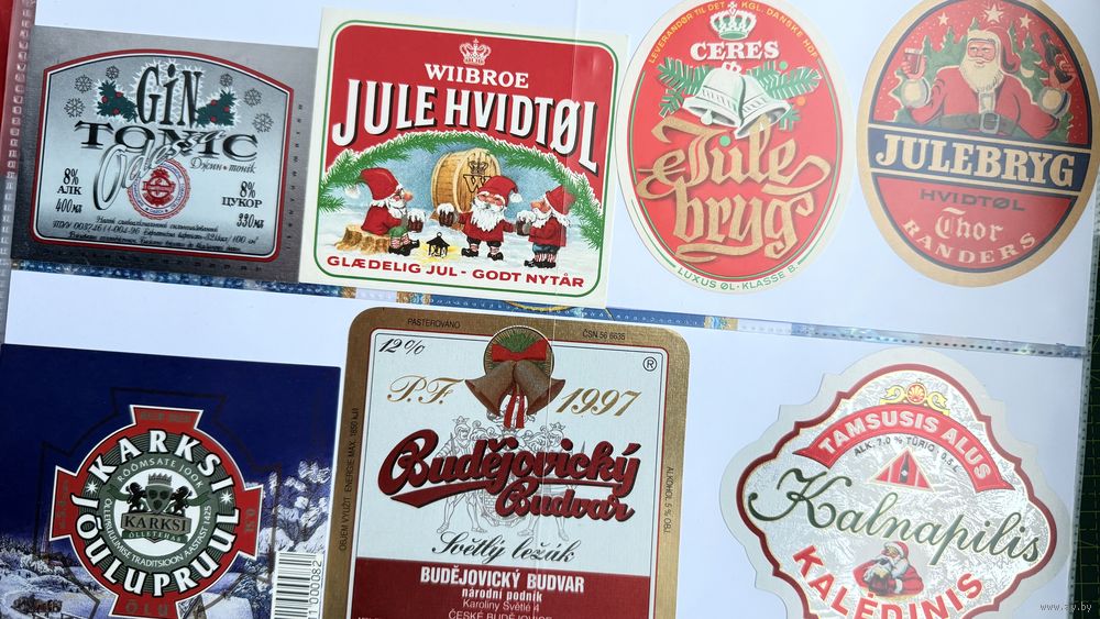 Этикетки от алкогольных, слабоалкогольных и безалкогольных напитков. Тема- Новый год. все разные, более 180 шт. на фото не все этикетки...