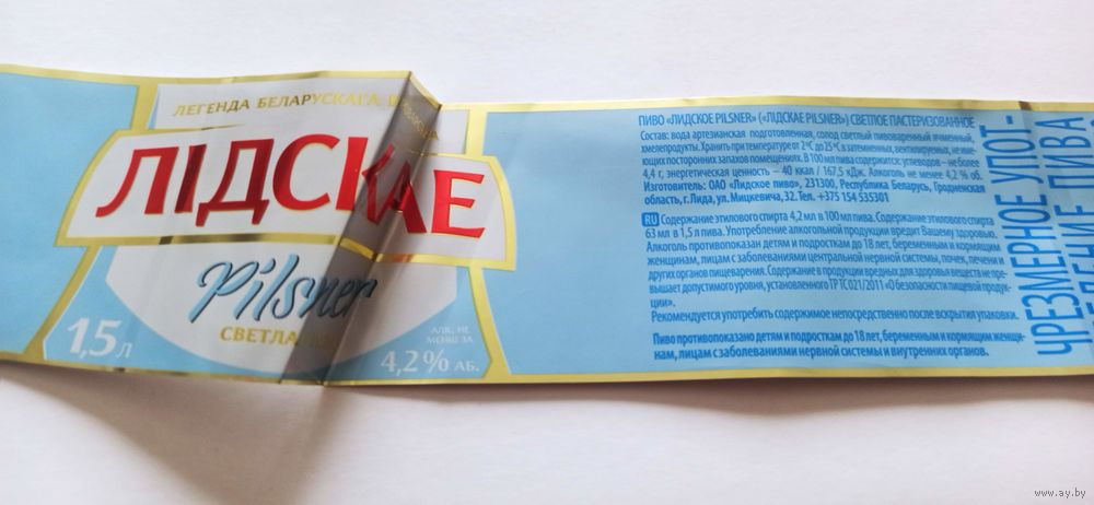 Этикетки от пива Лидское "Пилснер" 1,5 литра (л)