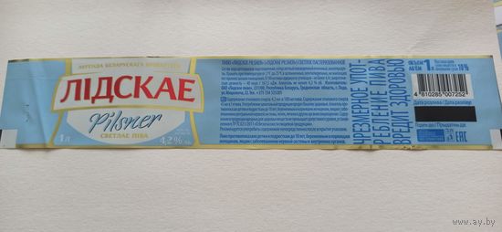 Этикетки от пива Лидское "Пилснер" 1 литр (л)