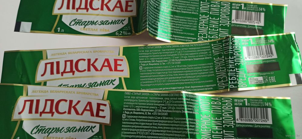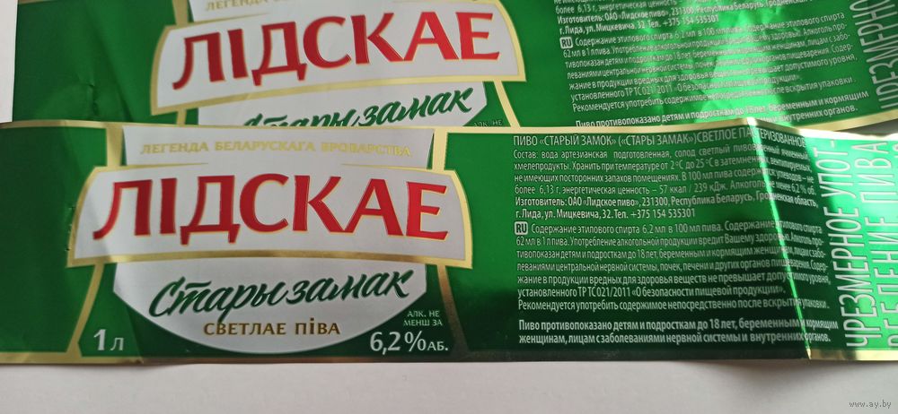 Этикетки от пива Лидское "Старый замок". (л) 1лит