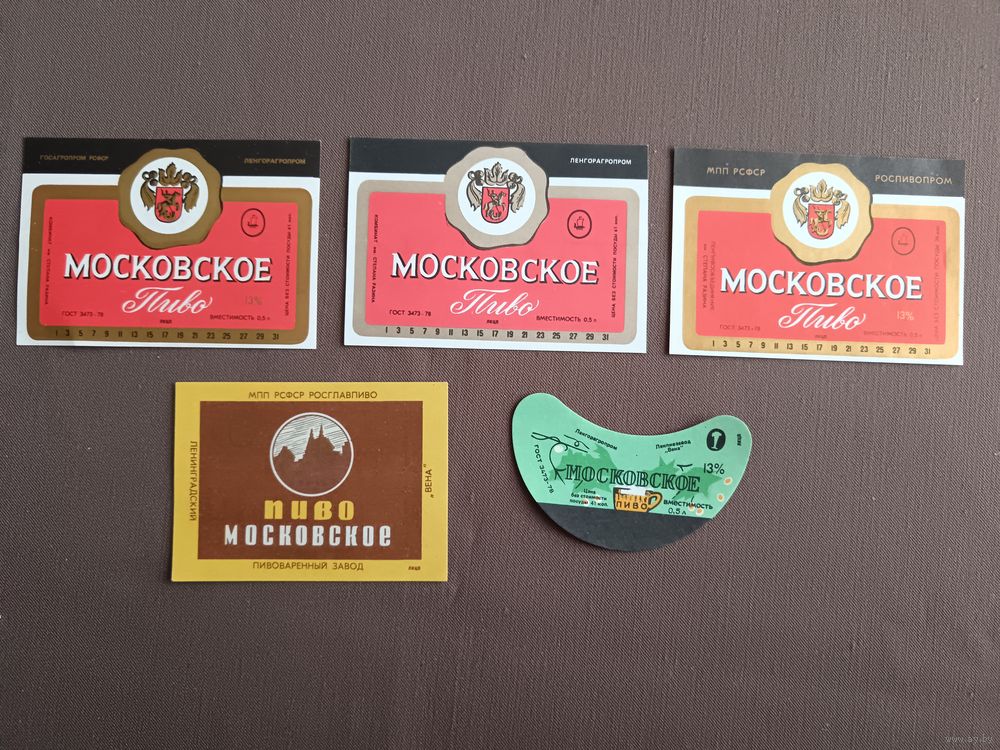 Этикетки от пива Московское по рублю, все разные, цена за 1 шт., см. все фото и описание лота, ю-217-11 (3395)