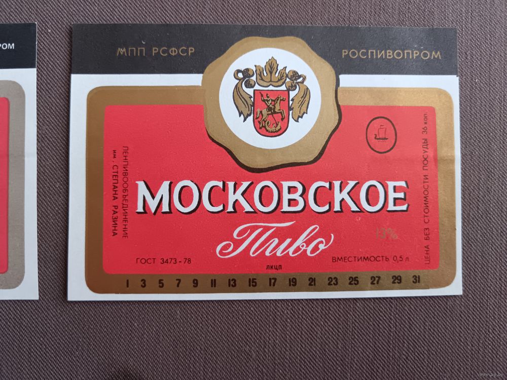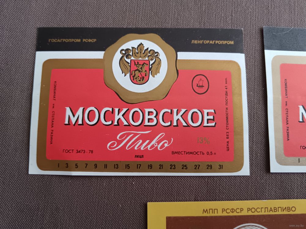 Этикетки от пива Московское, все разные, цена за 1 шт., см. все фото и описание лота, ю-217-11 (3395)