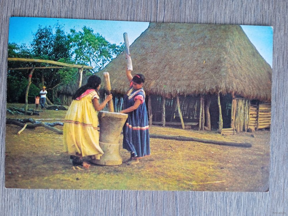 Этнография. Панама. Индейцы гуайми, очищающие рис от шелухи