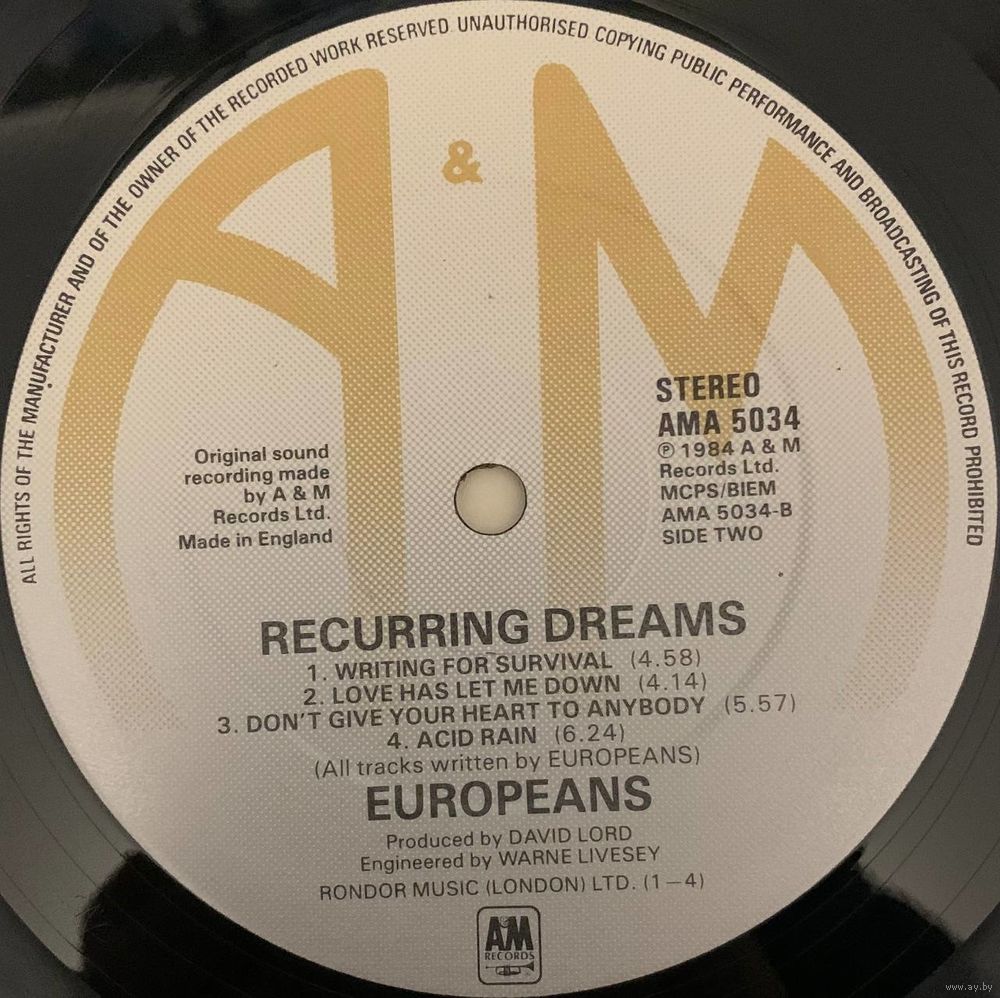 Состояние (пластинки/конверта) EX+/VG+ Состояние большинства пластинок/дисков определяется визуально. | |