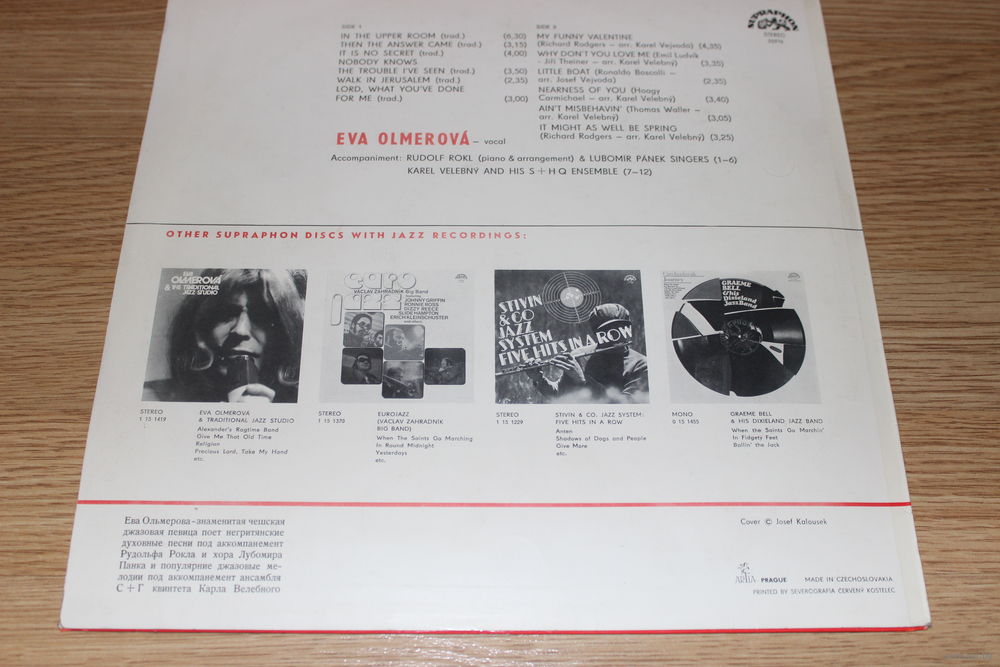 Also released for Gramofonový klub with different cover artwork as “Eva Olmerová”, Supraphon 0 15 0495 (mono)/1 15 0495 (stereo), identical matrix numbers.