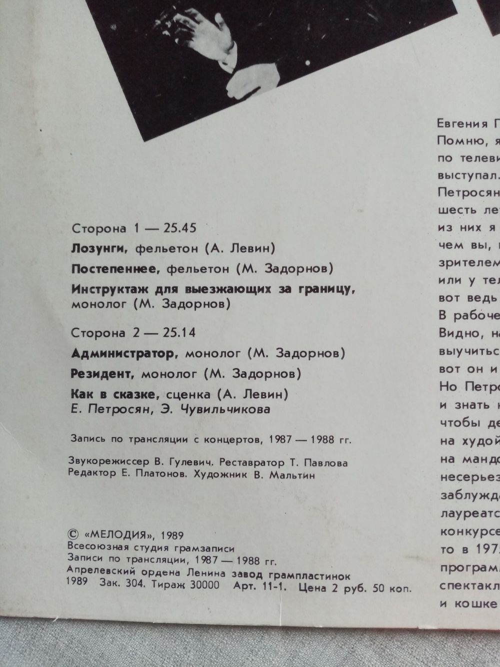 Евгений Петросян. Как поживаете? Часть 1 Михаил Задорнов, А. Левин LP 1989 г