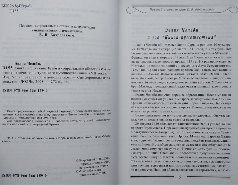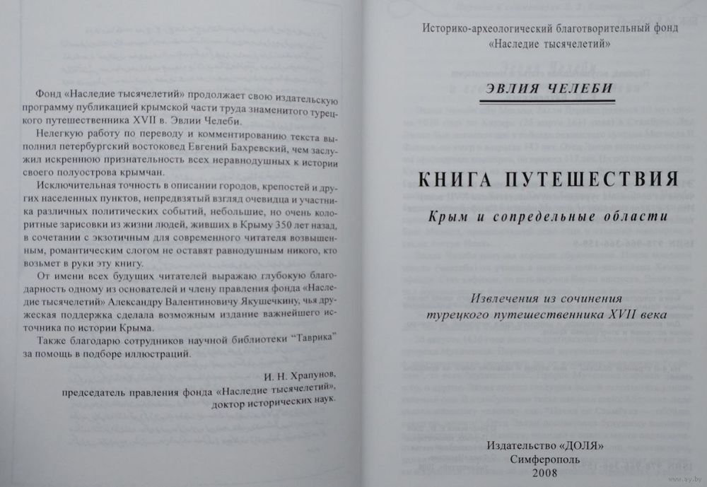Книга представляет собой научный перевод с османского языка посвященных Крыму частей "Книги путешествия" Эвлии Челеби ‒ знаменитого турецкого путешественника XVII века.