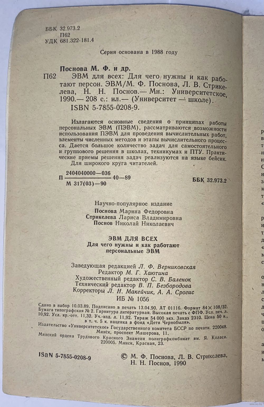 ЭВМ для всех: Для чего нужны и как работают персон. ЭВМ/М. Ф. Поснова, Л. В. Стрикелева, Н. Н. Поснов. — Мн.: Университетское,
