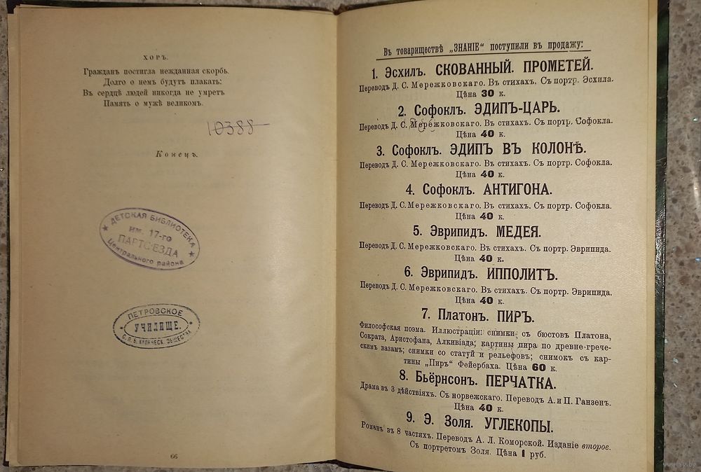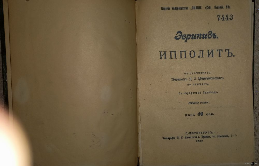 Эврипидь и Ипполитьс портретом спб. 1903 штаммп Перорвского куп. учил.