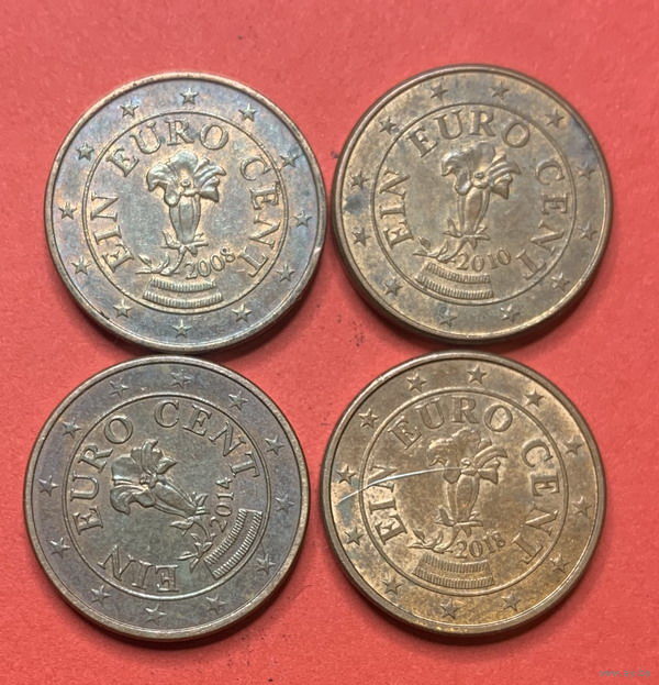 Евроценты Австрии, 4 монеты по 1 центу разных лет