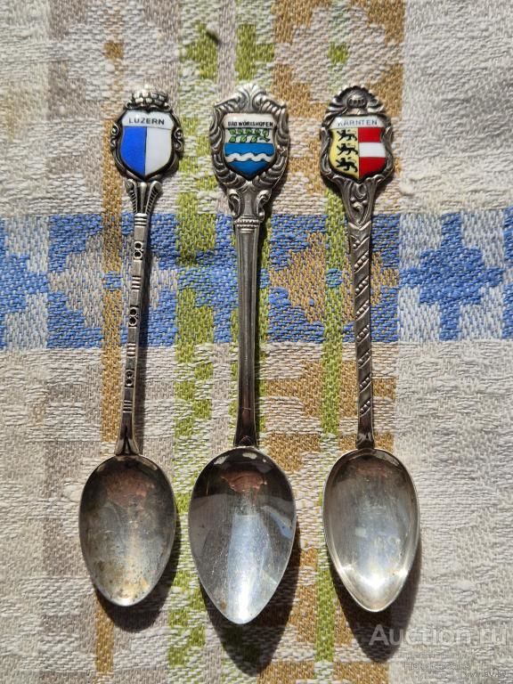 ЕВРОПЕЙСКИЕ ГОРОДА СЕРЕБРО 800 ЭМАЛЬ ГЕРБ ПОДБОРКА ИЗ 3 КОФЕЙНЫХ ЛОЖЕК