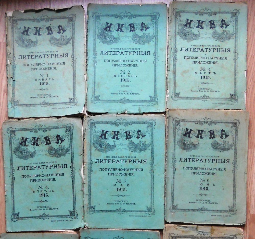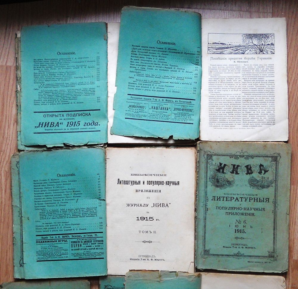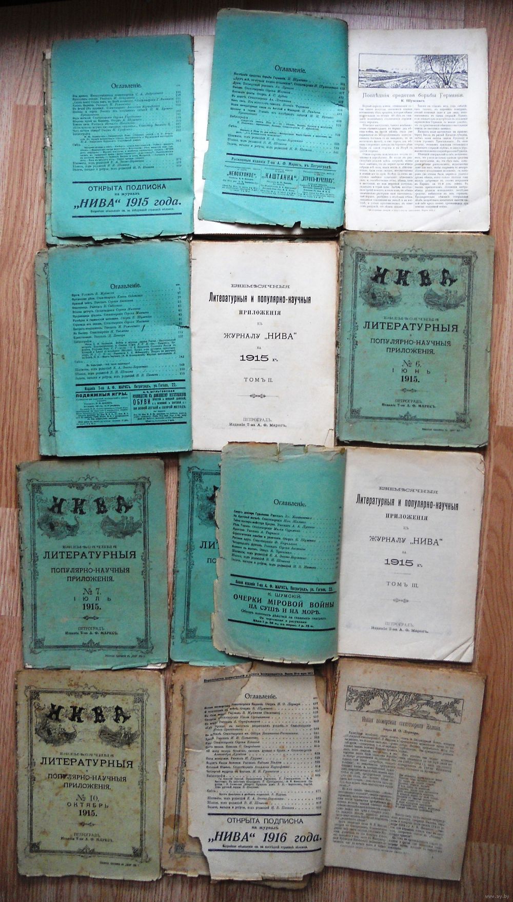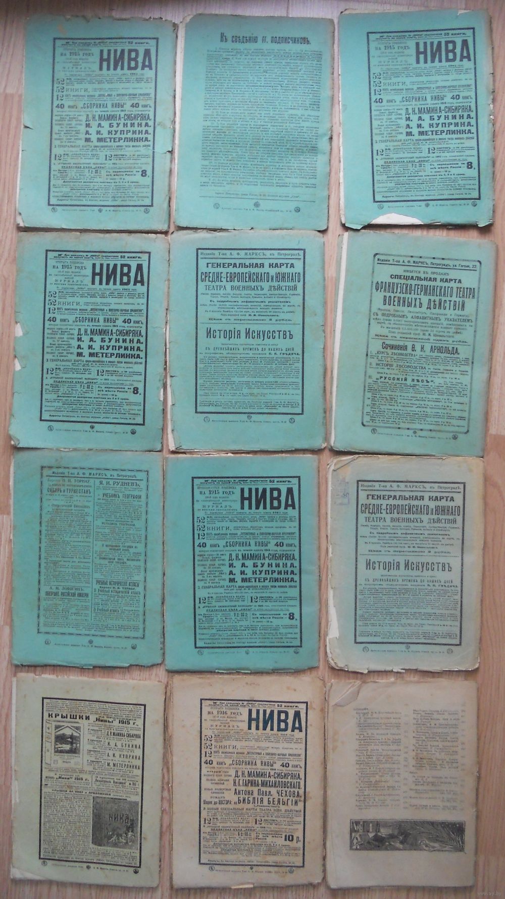 Полный комплект лит.приложений к журналу `Нива` за 1915 год. Большое кол-во статей, в т.ч. на военную тематику. Из авторов С.Городецкий, К..Чуковский, С.Есенин и др.