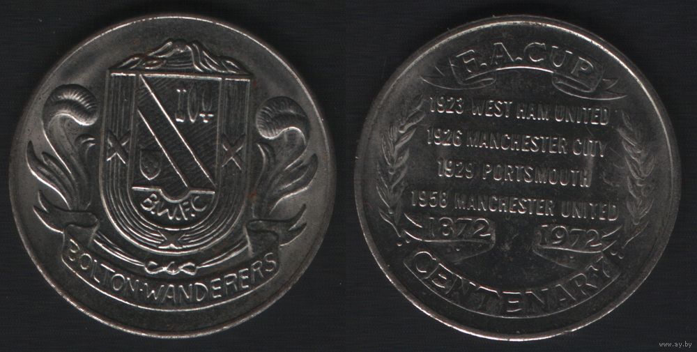 F.A.Cup Centenary 1872-1972. Bolton Wanderers (B.W.F.C) -- 1923 West Ham United, 1926 Manchester City, 1929 Portsmouth, 1958 Manchester United (f0