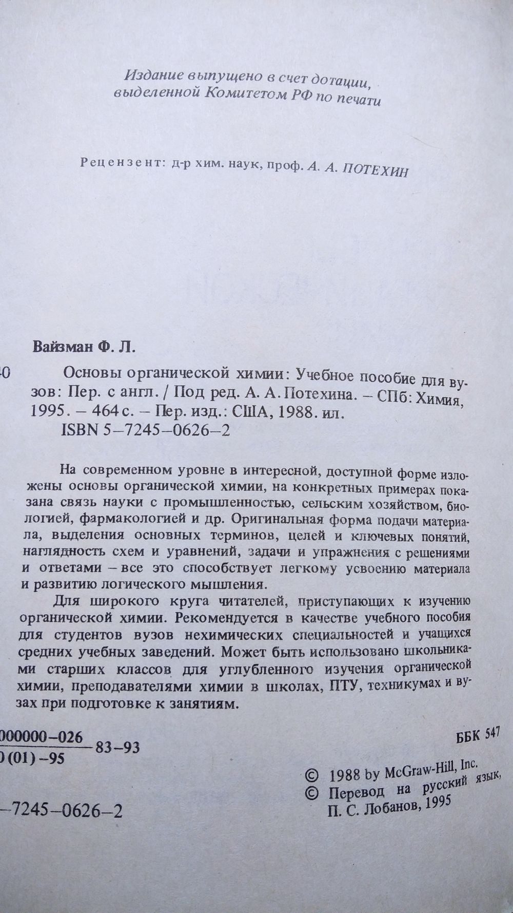 На современном уровне в интересной, доступной форме изложены основы органической химии, на конкретных примерах показана связь науки с промышленностью, сельским хозяйством, биологией, фармакологией и др. Оригинальная форма подачи материала, выделения основных терминов, целей и ключевых понятий, наглядность схем и уравнений, задачи и упражнения с решениями и ответами - все это способствует легкому усвоению материала и развитию логического мышления. Для широкого круга читателей, приступающих к изучению органической химии. Рекомендуется в качестве учебного пособия для студентов вузов нехимических специальностей и учащихся средних учебных заведений. Может быть использовано школьниками старших классов для углубленного изучения органической химии, преподавателями химии в школах, ПТУ, техникумах и вузах при подготовке к занятиям.