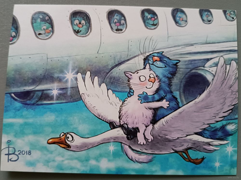 Фантазия. Синие коты Ирины Зенюк. Авторская открытка, глянец