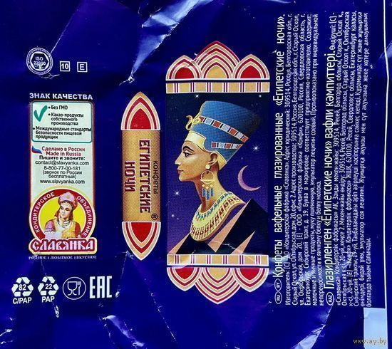 Фантик/обертка от конфеты "Египетские ночи" Россия Кондитерское Объединение "Словянка"