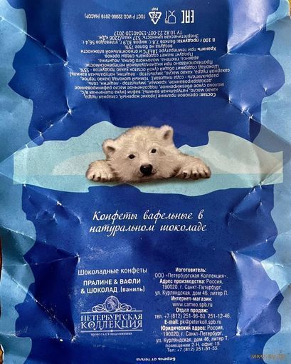 Фантик/обертка от конфеты "Мишка на севере" Россия ООО" Петербургская Коллекция"