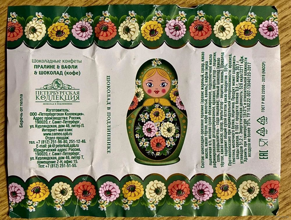 Фантик/обертка от конфеты Россия ООО "Петербургская Коллекция"