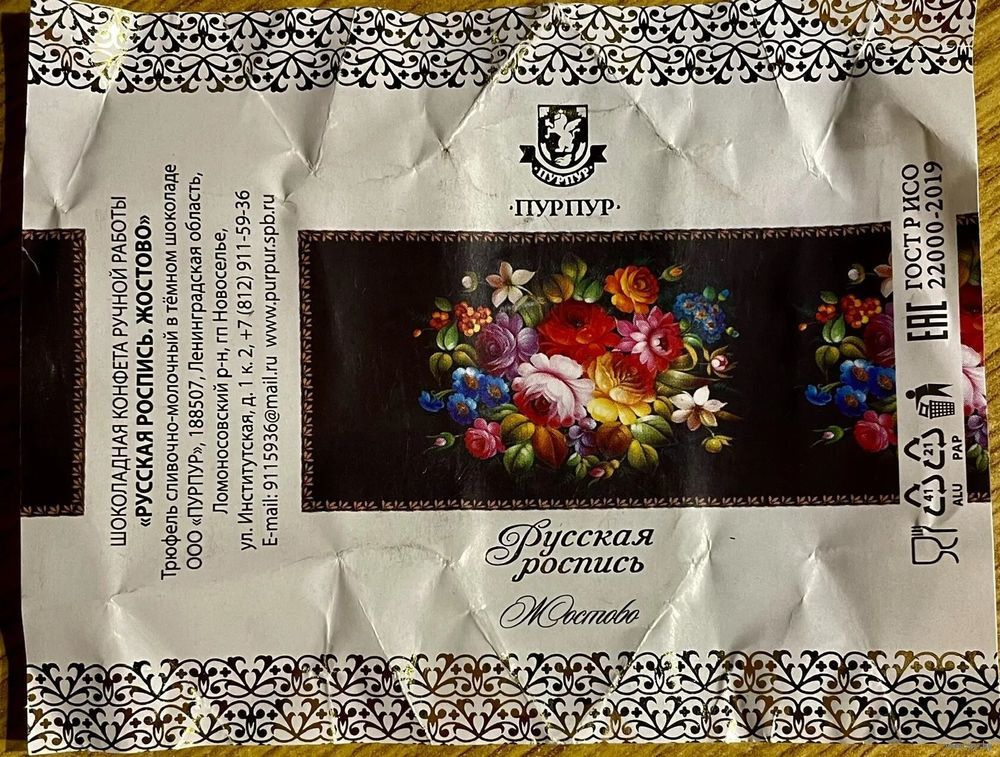Фантик/обертка от конфеты "Русская роспись. Жостово" Россия КФ Санкт-Петербурга ПУРПУР