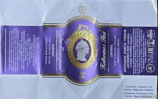 Фантик/обертка от конфеты "Сердце Екатерины" Россия ООО"Золотые конфеты"