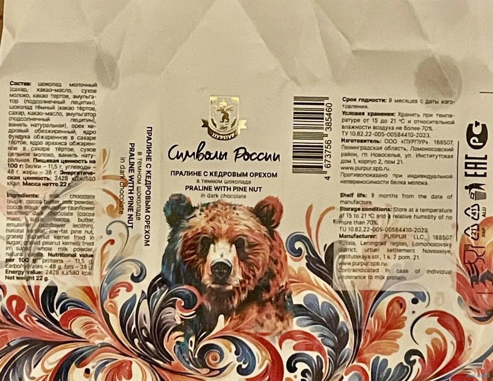 Фантик/обертка от конфеты "Символы России" Россия КФ Санкт-Петербурга ПУРПУР