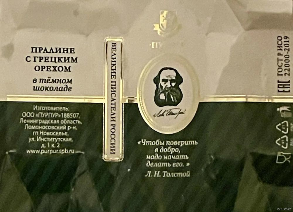 Фантик/обертка от конфеты "Великие писатели России" Л. Толстой Россия КФ Санкт-Петербурга ПУРПУР