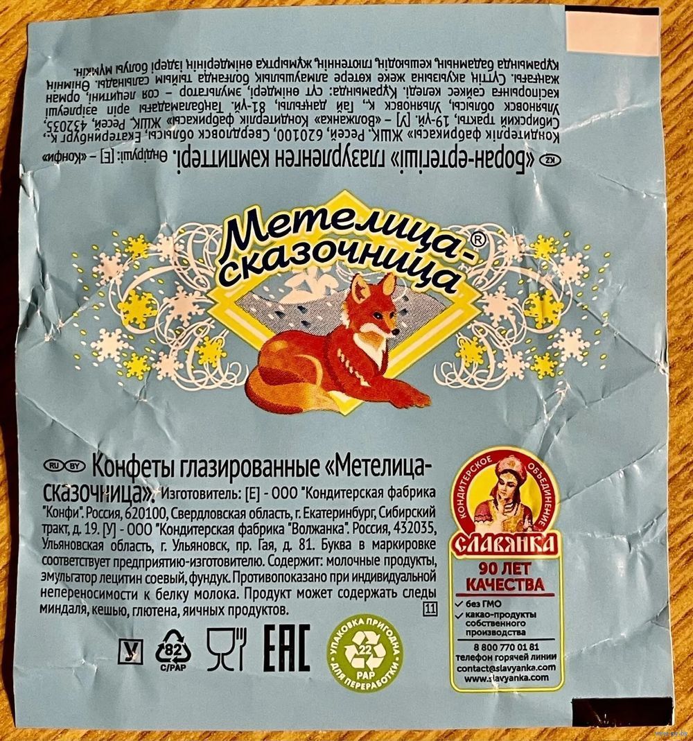 Фантик обёртка от конфеты "Метелица-сказочница" Россия ООО Кондитерская фабрика "Волжанка"