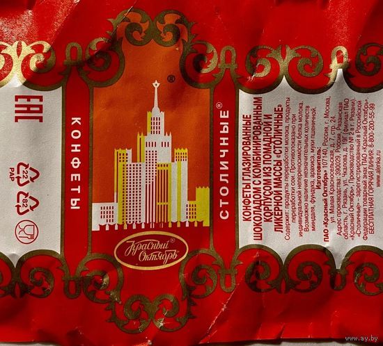 Фантик обёртка от конфеты "Столичные" Россия Красный Октябрь