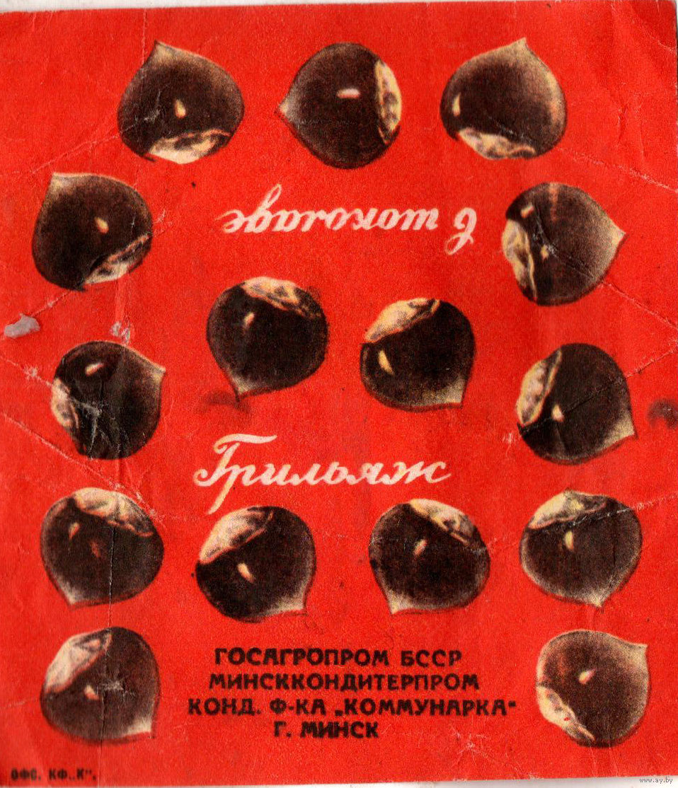 Фантик от конфеты "Грильяж в шоколаде" ("Коммунарка", БССР)