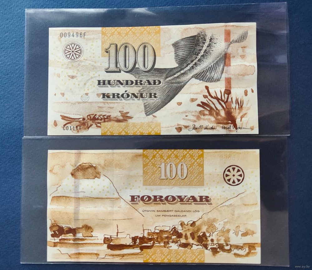 Фарерские острова (Фареры), 100 крон 2011 г., P-30 (хвост трески, город Клаксвуйк на острове Борой), UNC