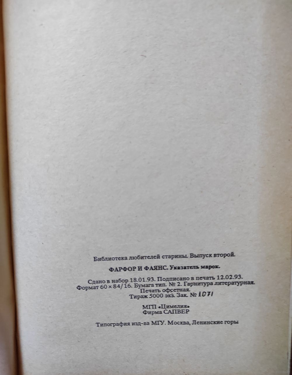 "Фарфор и фаянс российской империи" + "Фарфор и фаянс. Указатель марок"