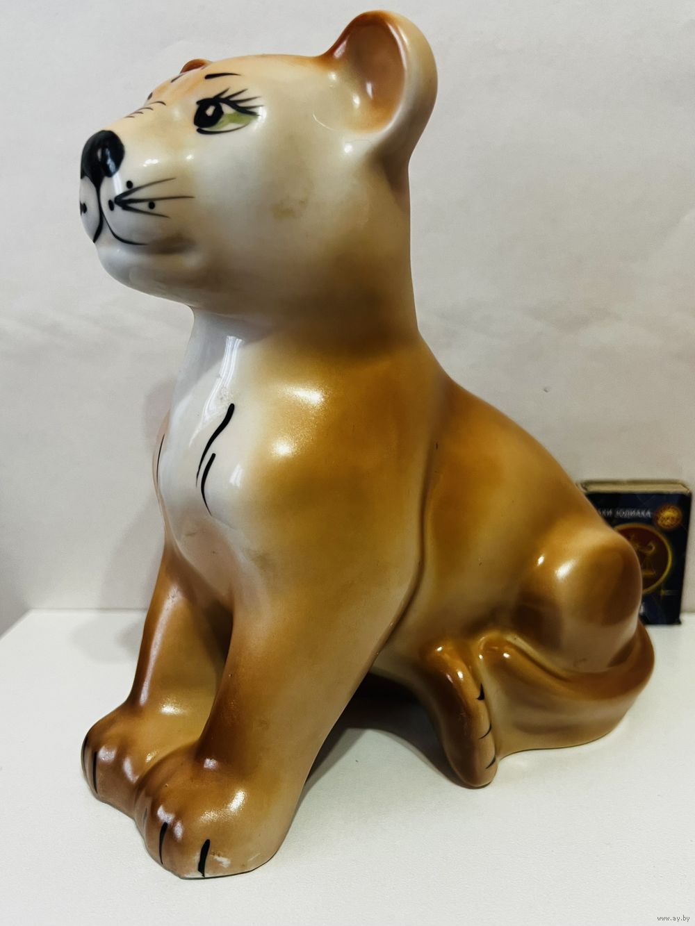 Фарфоровая статуэтка копилка "Львёнок", высота 18 см, производство Добрушский Фарфоровый Завод (ДФЗ). Продавец не является экспертом, после выигрышной ставки вы получите предмет, изображенный на фотографии. Делая ставку вы принимаете условия продажи лота, установленные продавцом. Пересылку оплачивает покупатель. Выход на связь в течение 3 дней. Оплата лотов в течение 5 дней. Отправка лотов в течение 5 дней после оплаты и предварительной договорённости.