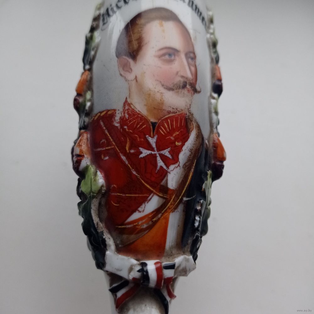 На чаше изображен германский император и король Пруссии Вильгельм II и выше имя военнослужащего «Nicolaus Krämer» (Николай Крэмер).