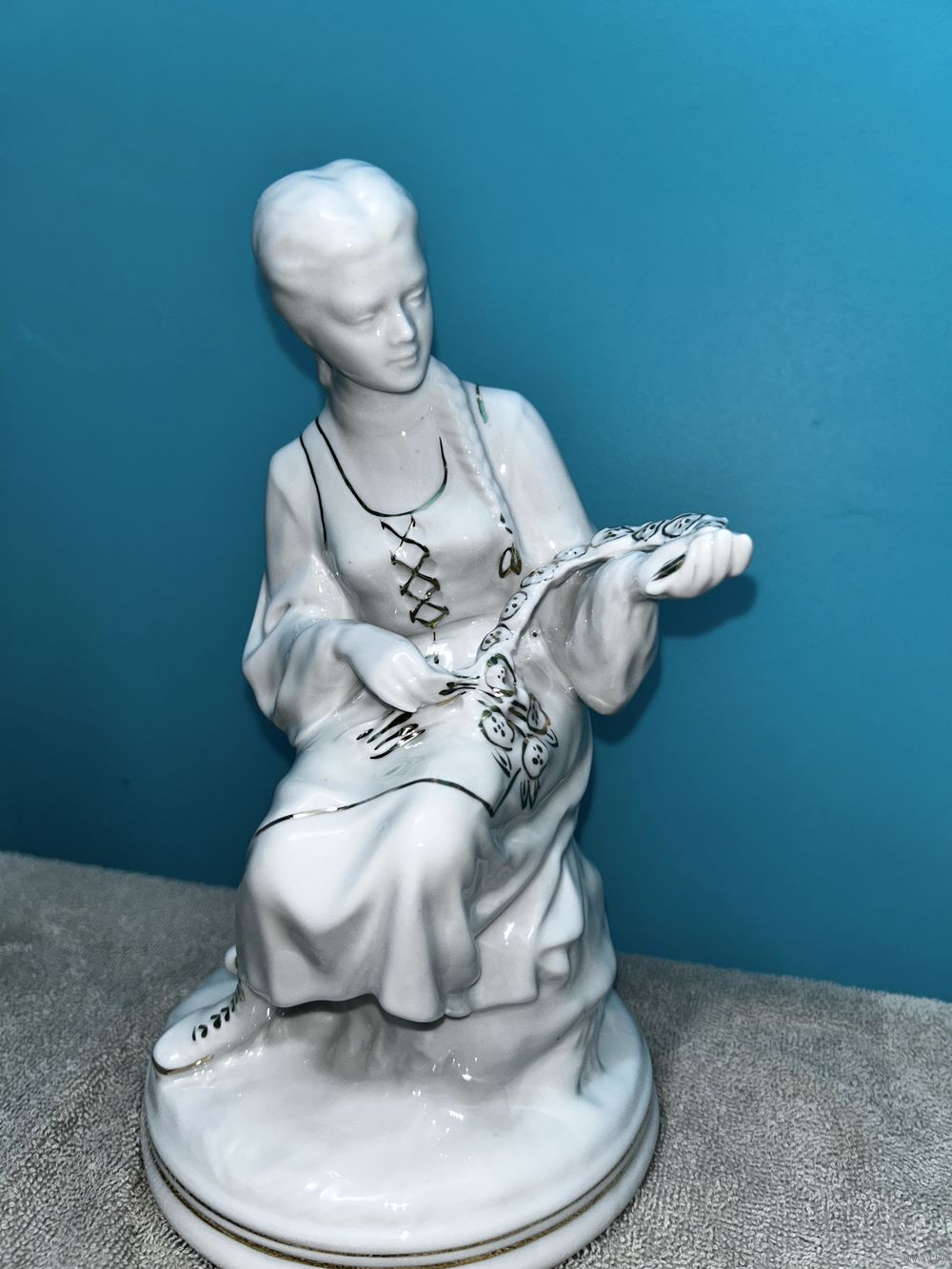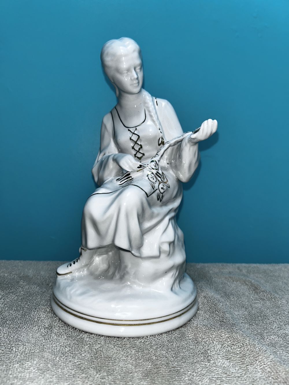 Фарфоровая статуэтка девушка с венком, длина 25см.