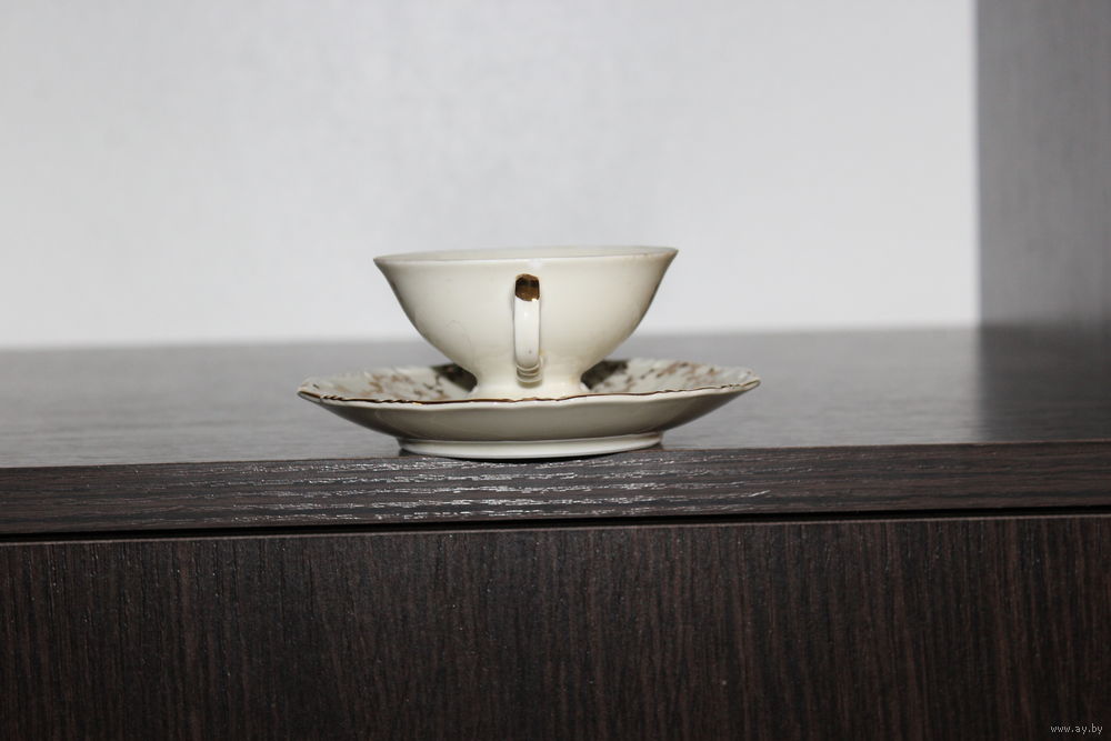| Присутствуют мелкие царапинки, потертости позолоты, небольшой скольчик на чашке. | |