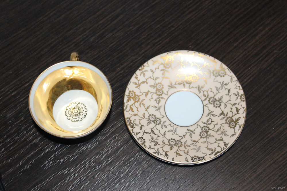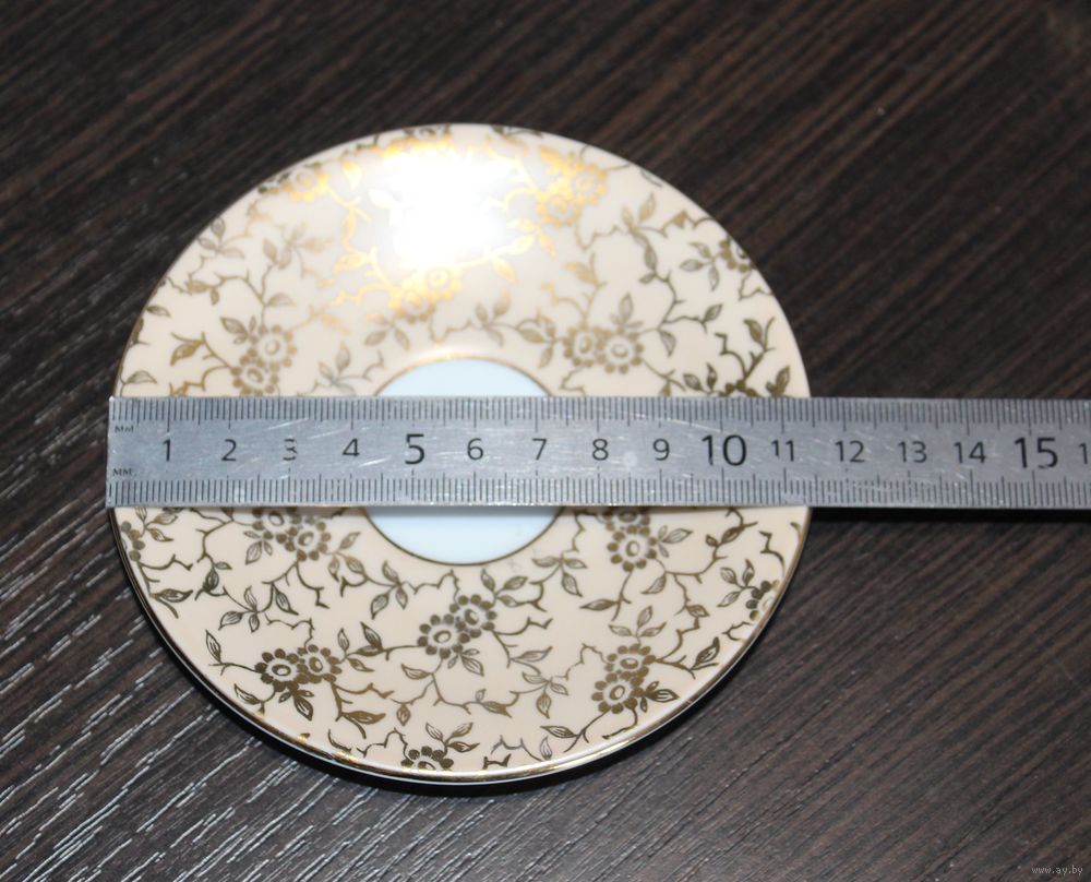 Диаметр чашки 7,4 см., высота 4 см., диаметр тарелки 11,5 см.