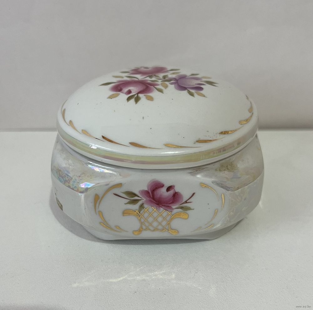 Фарфоровая шкатулка 8х8 см, высота 5,5 см производство Добрушский Фарфоровый Завод (ДФЗ). Продавец не является экспертом, состояние лотов всегда оценивайте самостоятельно, по представленным фотографиям, после выигрышной ставки вы получите предмет, изображенный на фотографии. Делая ставку вы принимаете условия продажи лота, установленные продавцом. Пересылку оплачивает покупатель. Выход на связь в течение 3 дней. Оплата лотов в течение 5 дней. Отправка лотов в течение 5 дней после оплаты и предварительной договорённости.