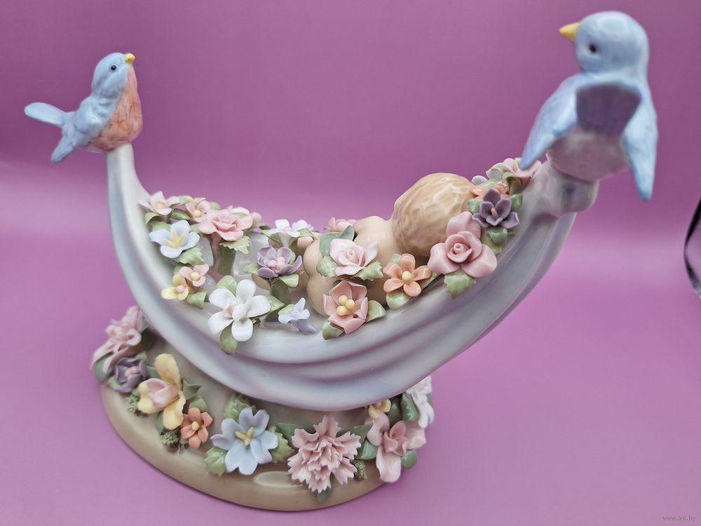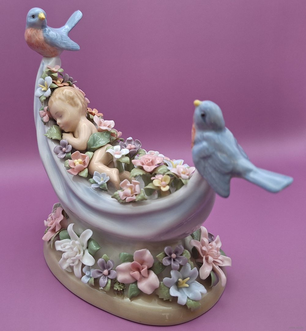 Музыкальная шкатулка-статуэтка «Спящий малыш феи» из тонкого фарфора. Высококачественный фарфор, расписанный вручную. Механическая музыкальная шкатулка, играет мелодию «Beautiful Dreamer».