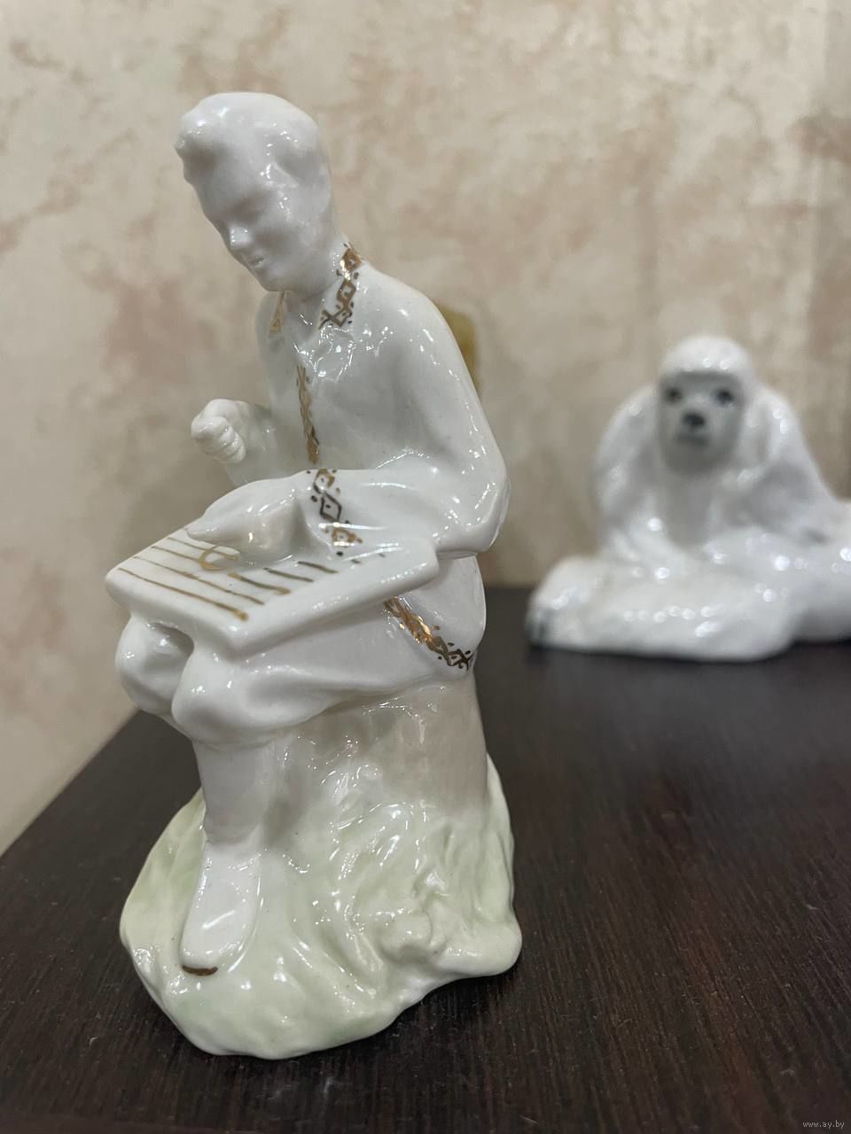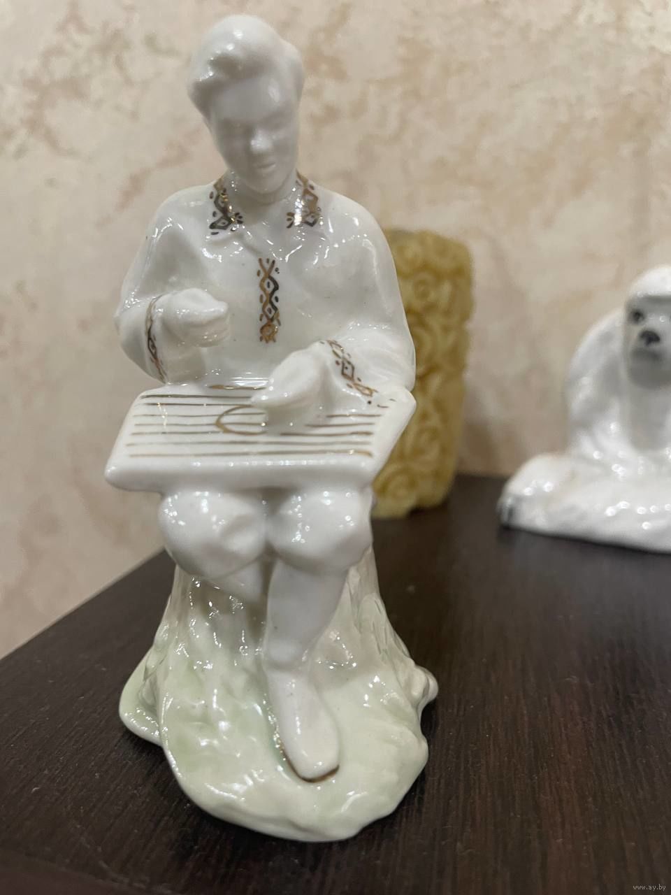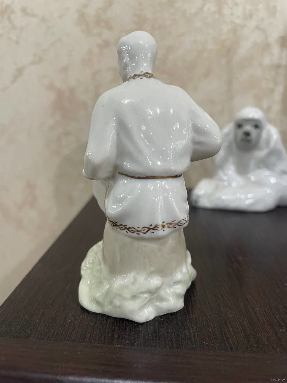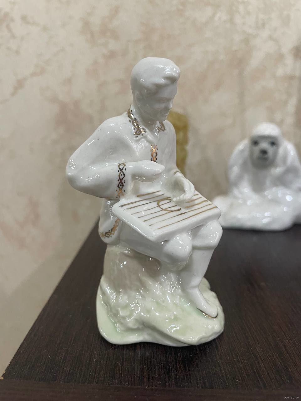 Фарфоровая статуэтка «Цимбалист» (Гусляр) была создана Минским фарфоро-фаянсовым заводом в период с 1957 по 1965 годы. Она выполнена из фарфора и изображает музыканта, играющего на цимбалах.досталась по случаю,,есть нюанс,склейка головы в районе шеи,сразу не заметил,еле видно.в остальном как новая.