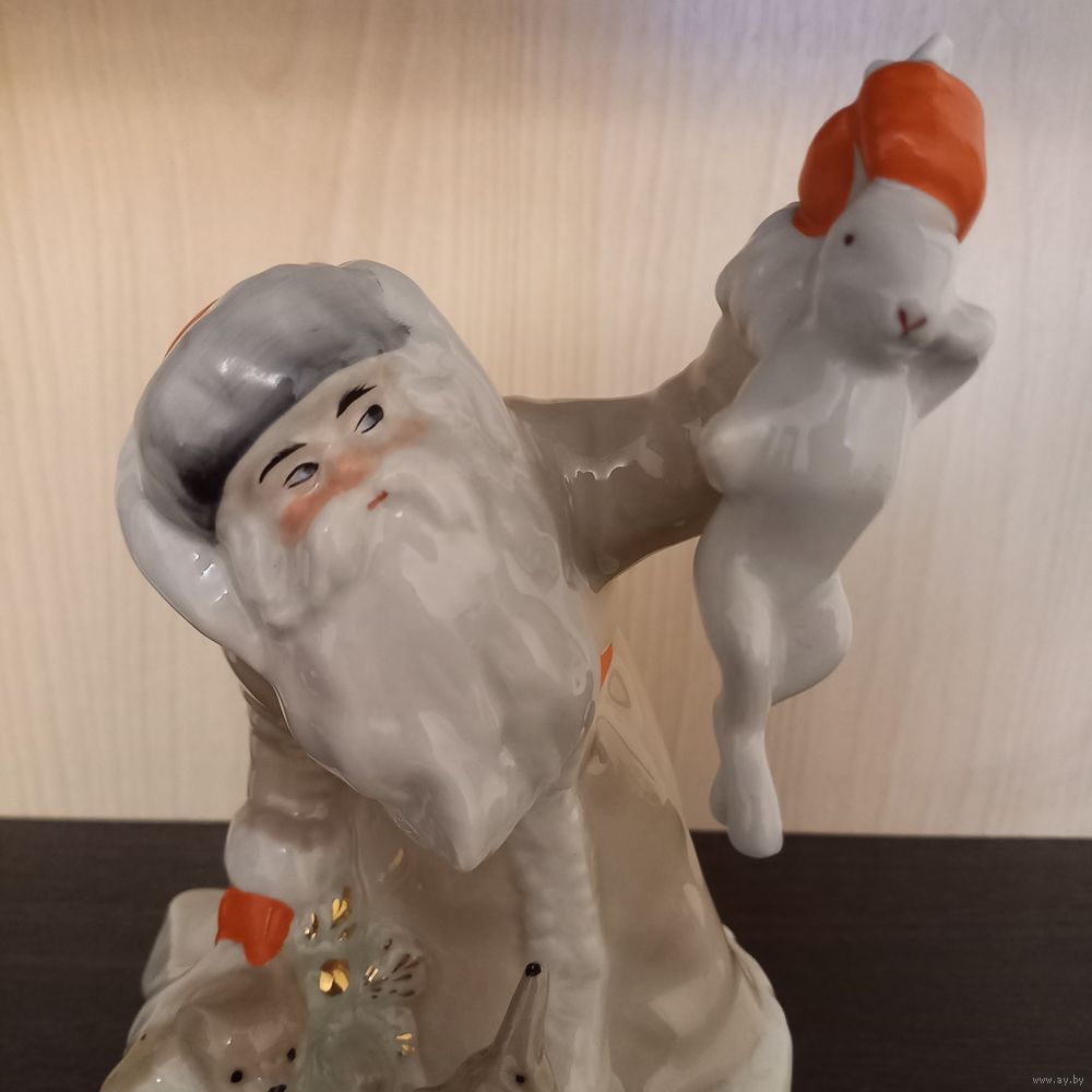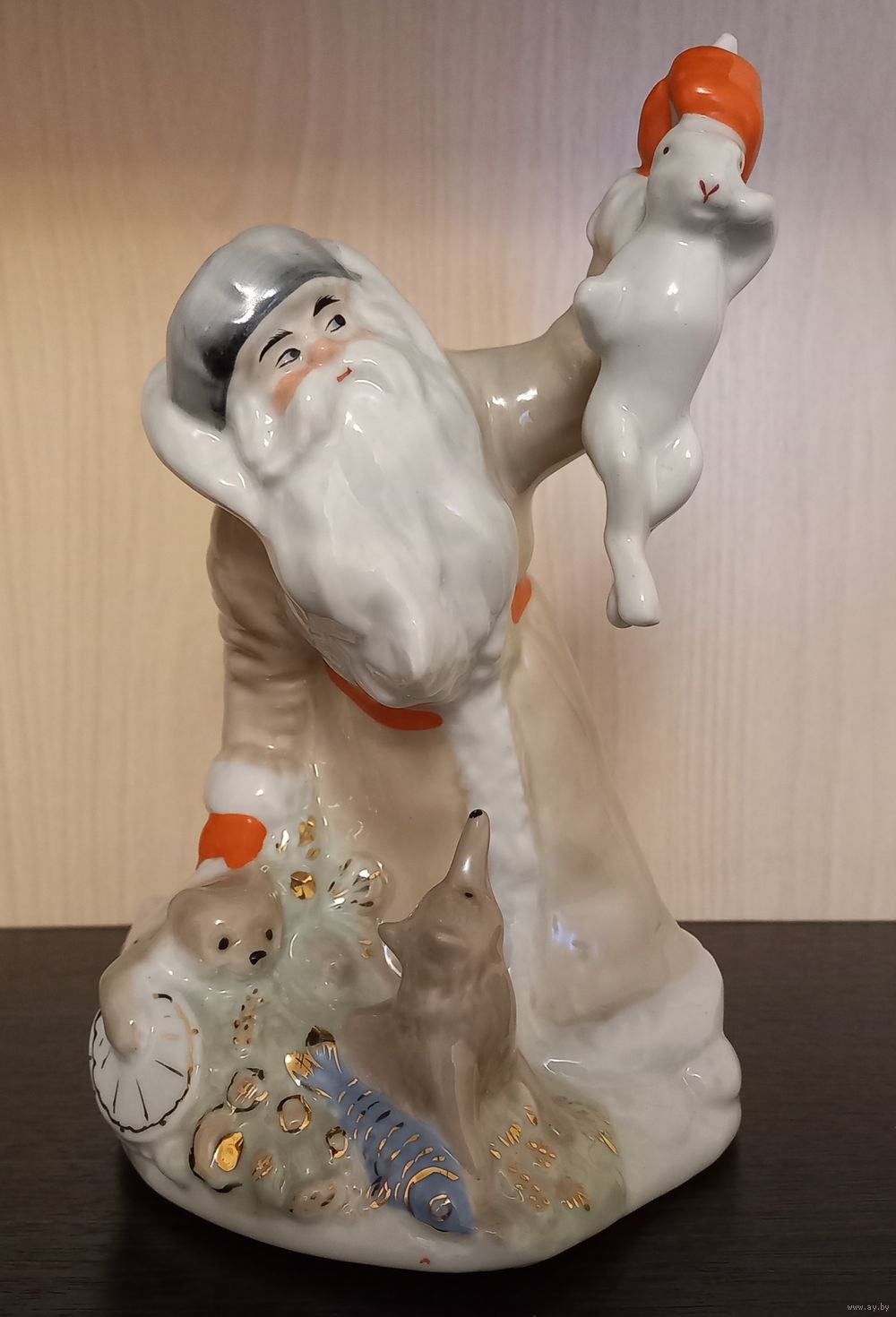 Фарфоровая статуэтка "Дед мороз с зайцем и зверями", Городница, высший сорт, красное клеймо,50-60гг.XX столетия. Состояние хорошее. Без реставрации. Высота 20см.