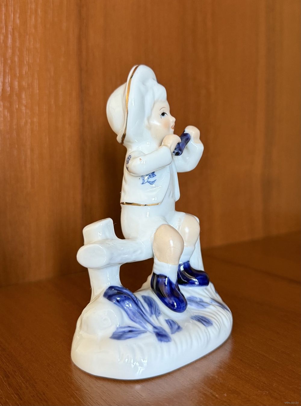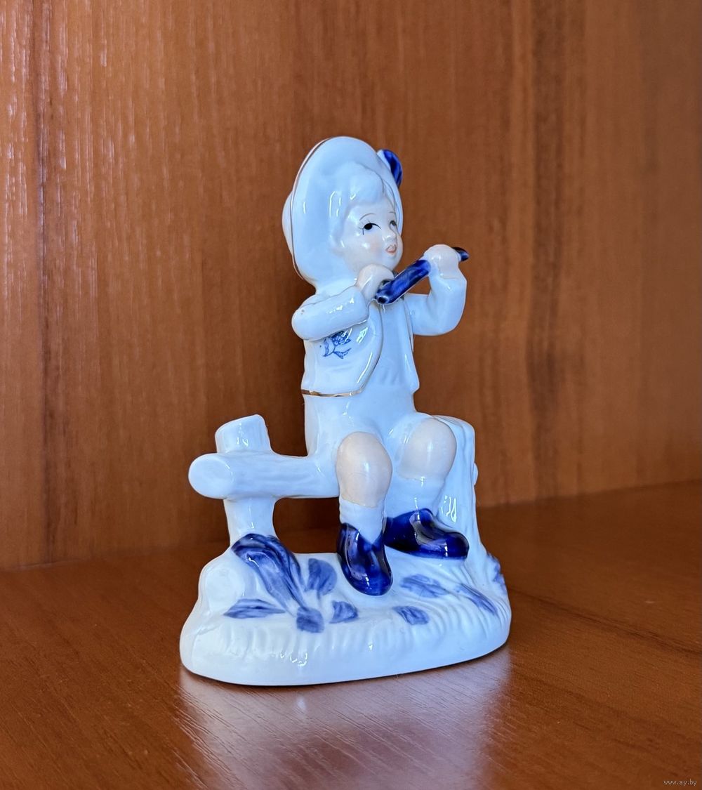 Фарфоровая статуэтка мальчика с флейтой, сидящего на изгороди. Capodimonte.