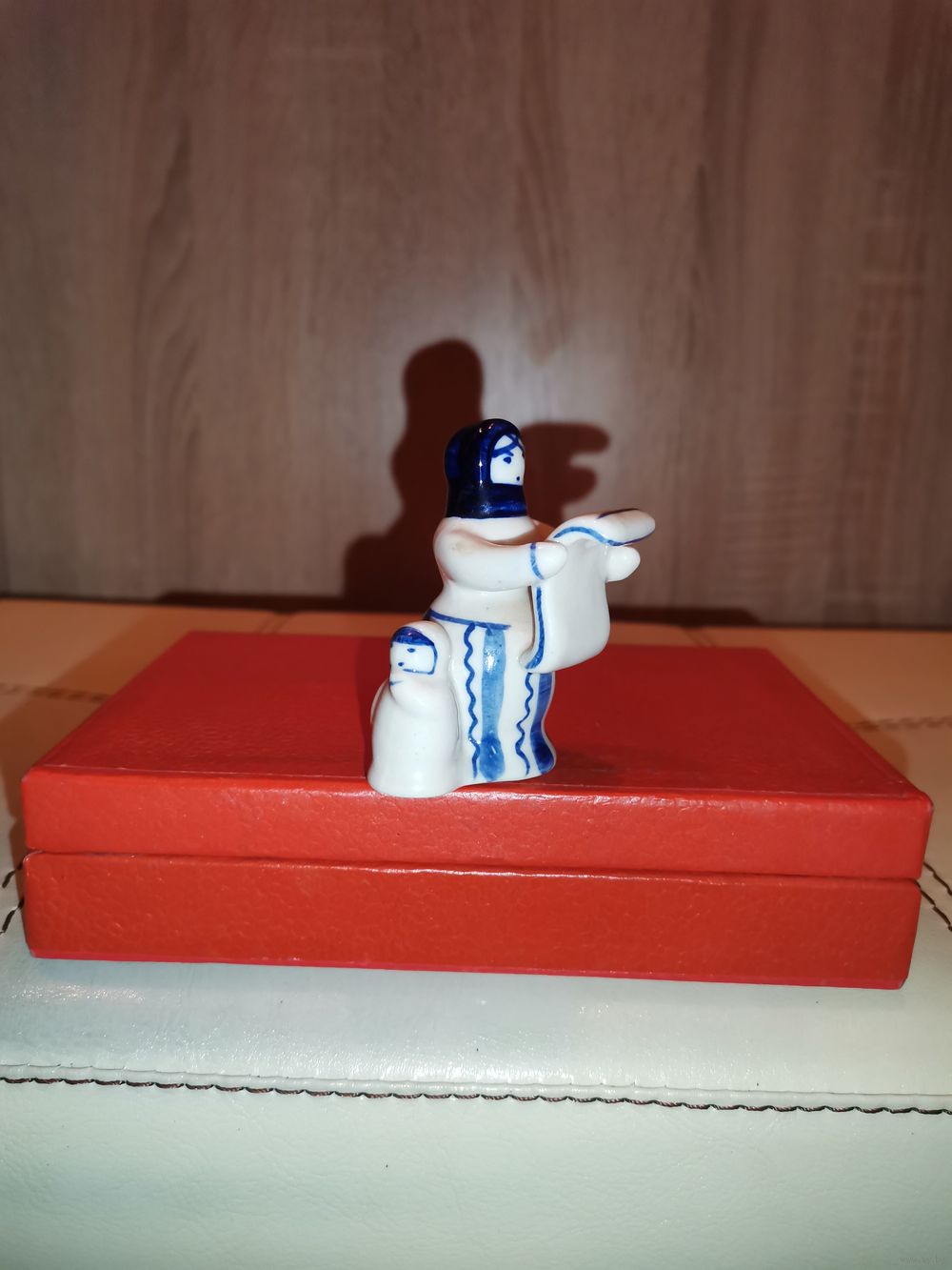 Фарфоровая статуэтка "Мама с ребёнком", Гжель, времён СССР, высота 7 см., без сколов.