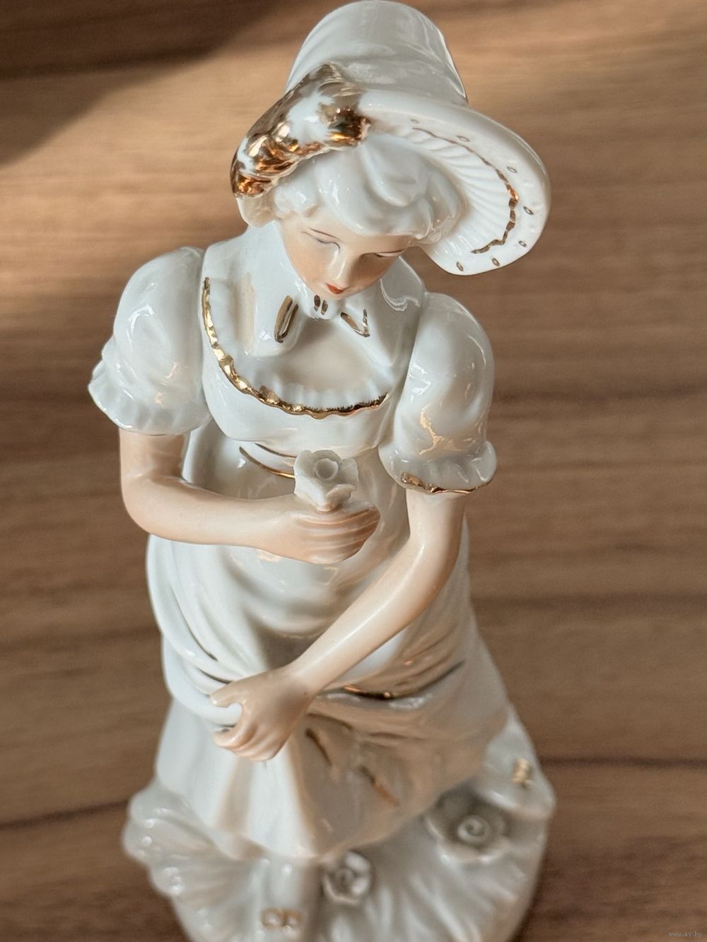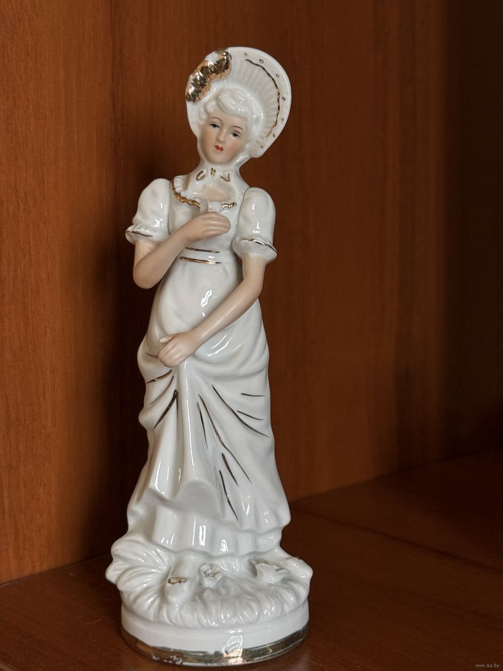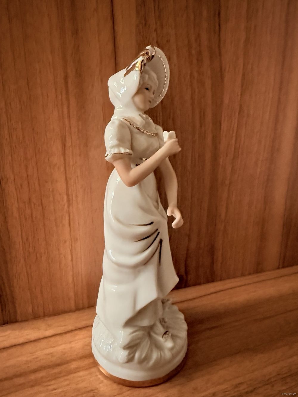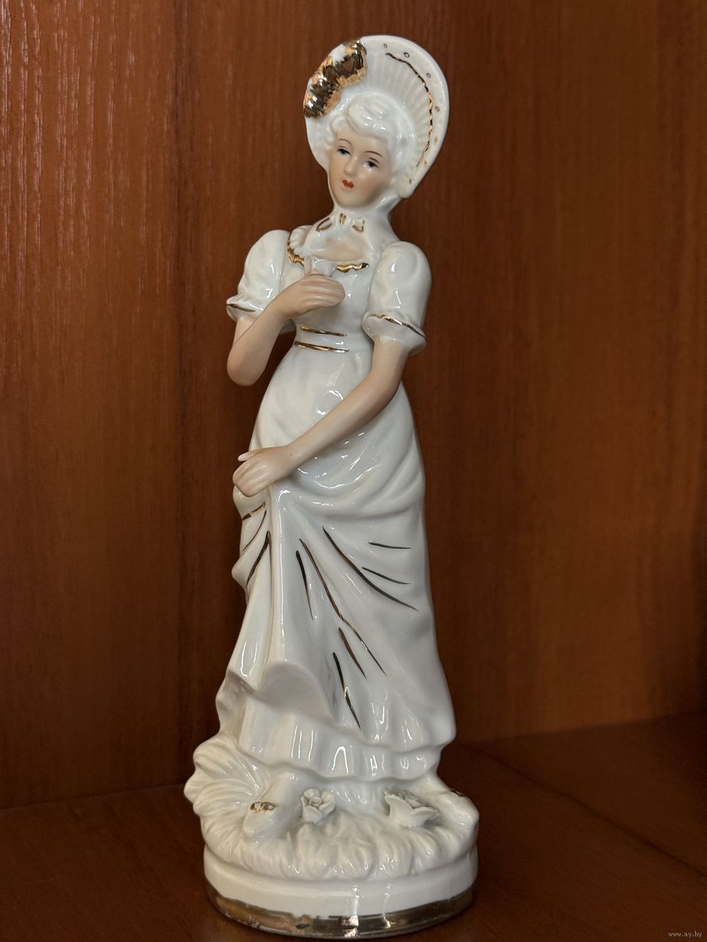 Статуэтка Capodimonte молодой дамы в струящемся белом платье и шляпке.