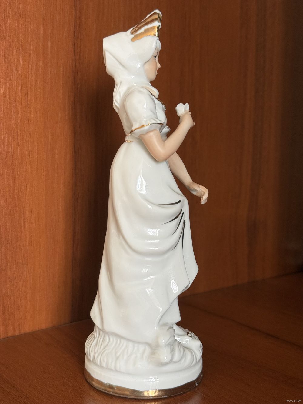 Нежный румянец, аккуратные губы и задумчивый взгляд голубых глаз придают статуэтке «живое» выражение.