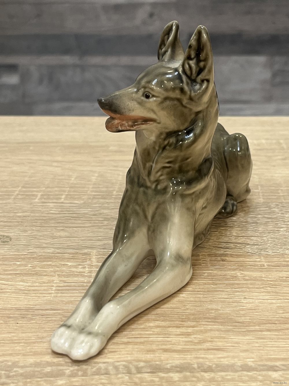 Это фарфоровая статуэтка немецкой овчарки, выпущенная Ленинградским фарфоровым заводом (ЛФЗ).