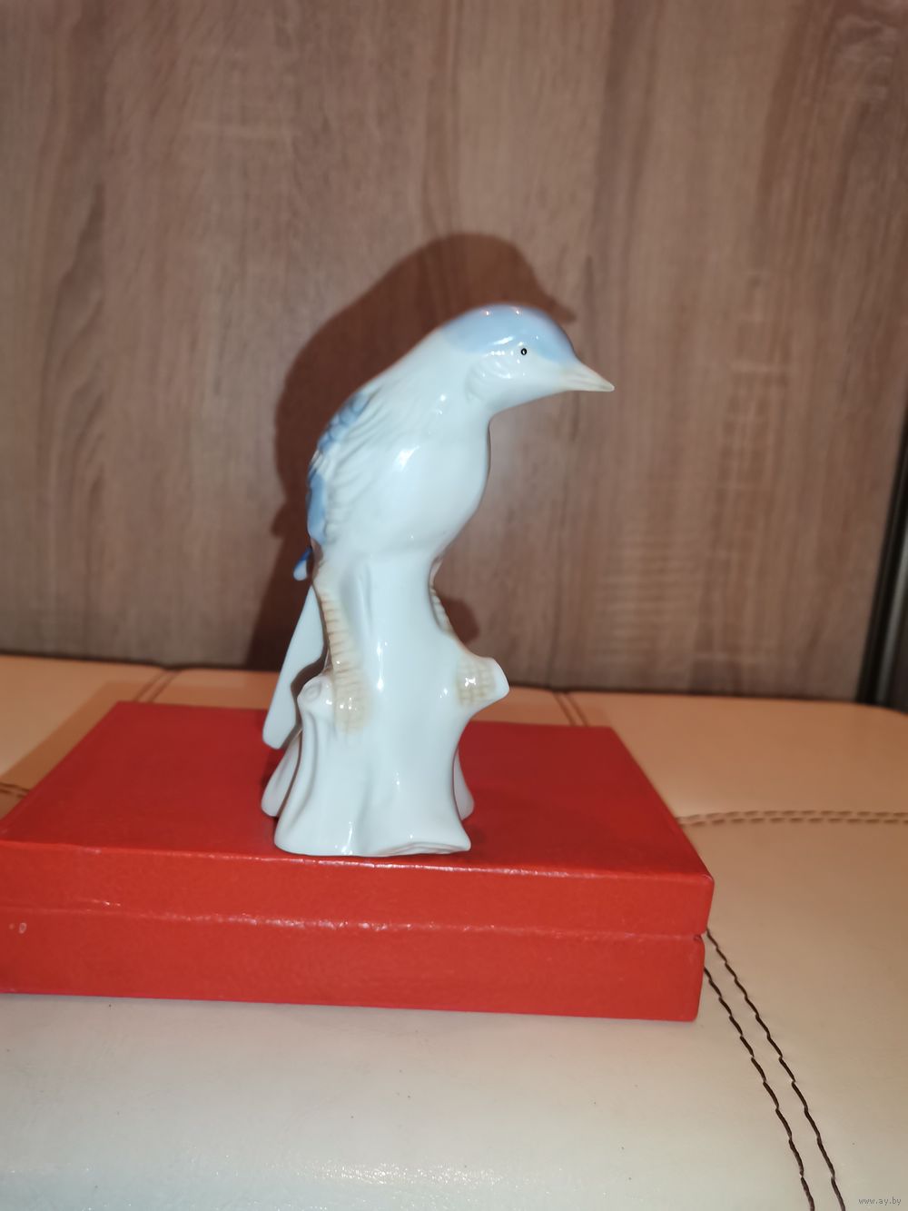 Фарфоровая статуэтка "Птица на пне", высота 13 см., без сколов и трещин.