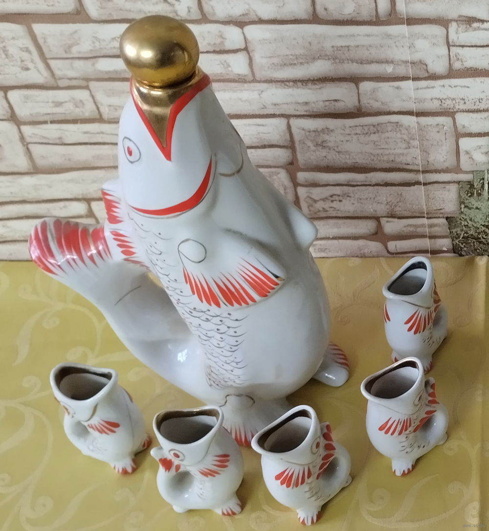 Фарфоровая статуэтка-штоф Рыбка + 5 маленьких рыбок