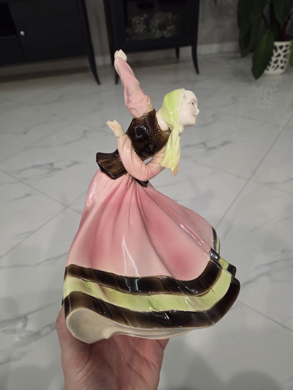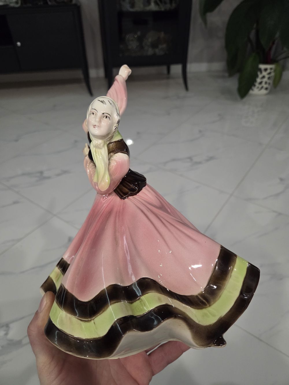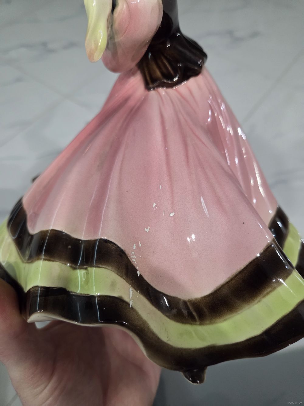 Отсутствует указательный палец, немного испачкана в белую краску ( всё видно на фото), больше проблем нет.