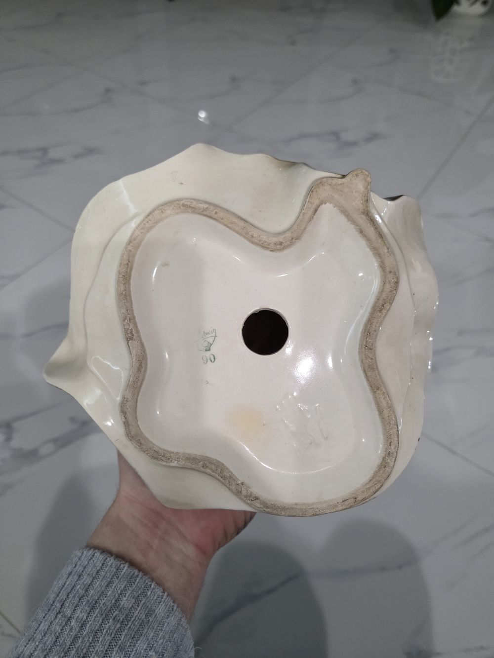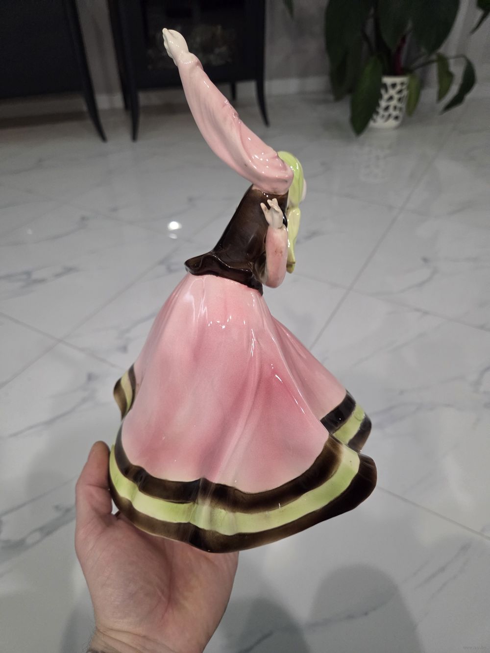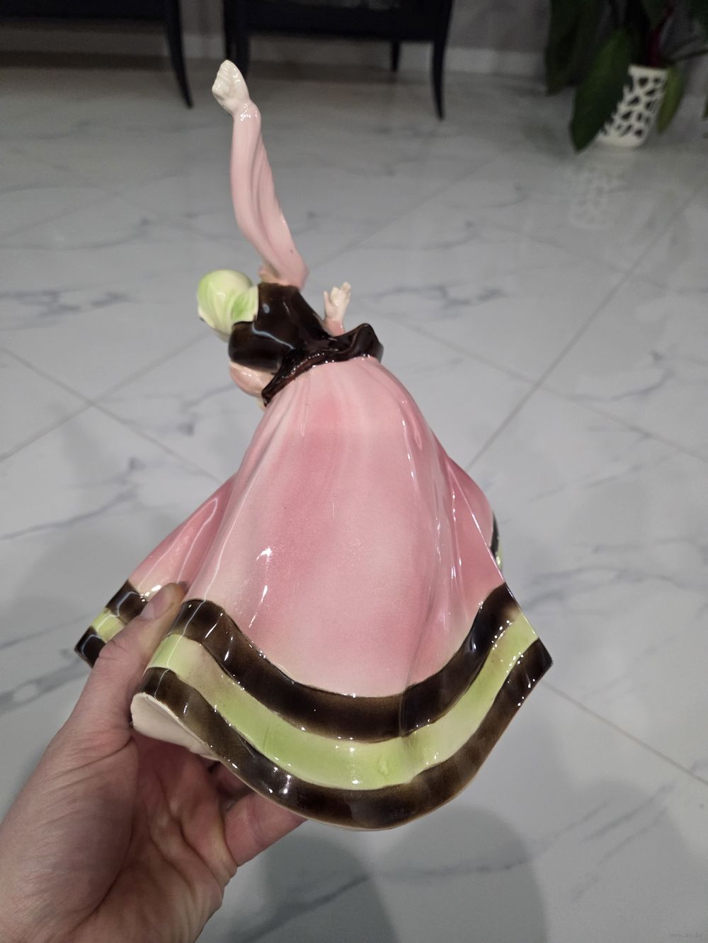 Отсутствует указательный палец, немного испачкана в белую краску ( всё видно на фото), больше проблем нет.