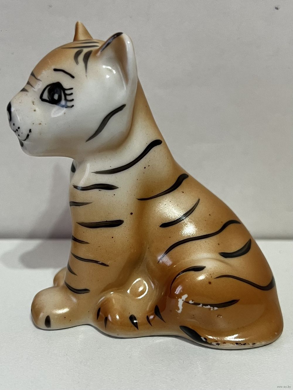 Фарфоровая статуэтка "Тигрёнок", высота 7,5 см, производство Добрушский Фарфоровый Завод (ДФЗ). Продавец не является экспертом, после выигрышной ставки вы получите предмет, изображенный на фотографии. Делая ставку вы принимаете условия продажи лота, установленные продавцом. Пересылку оплачивает покупатель. Выход на связь в течение 3 дней. Оплата лотов в течение 5 дней. Отправка лотов в течение 5 дней после оплаты и предварительной договорённости.